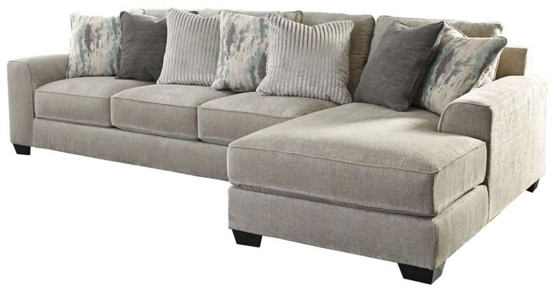 Includes right-arm facing corner chaise and left-arm facing sofa
