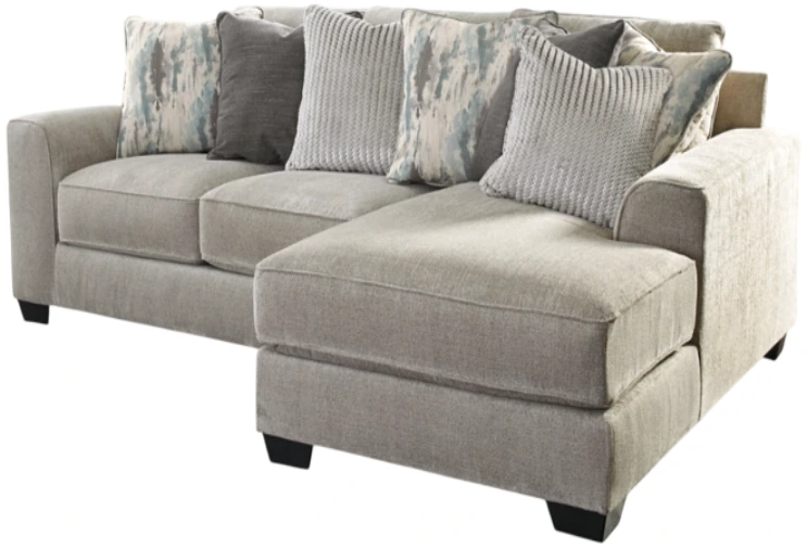 Includes 2 pieces: right-arm facing corner chaise and left-arm facing loveseat