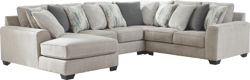 Includes 4 pieces: left-arm facing corner chaise, armless loveseat, right-arm facing loveseat and wedge