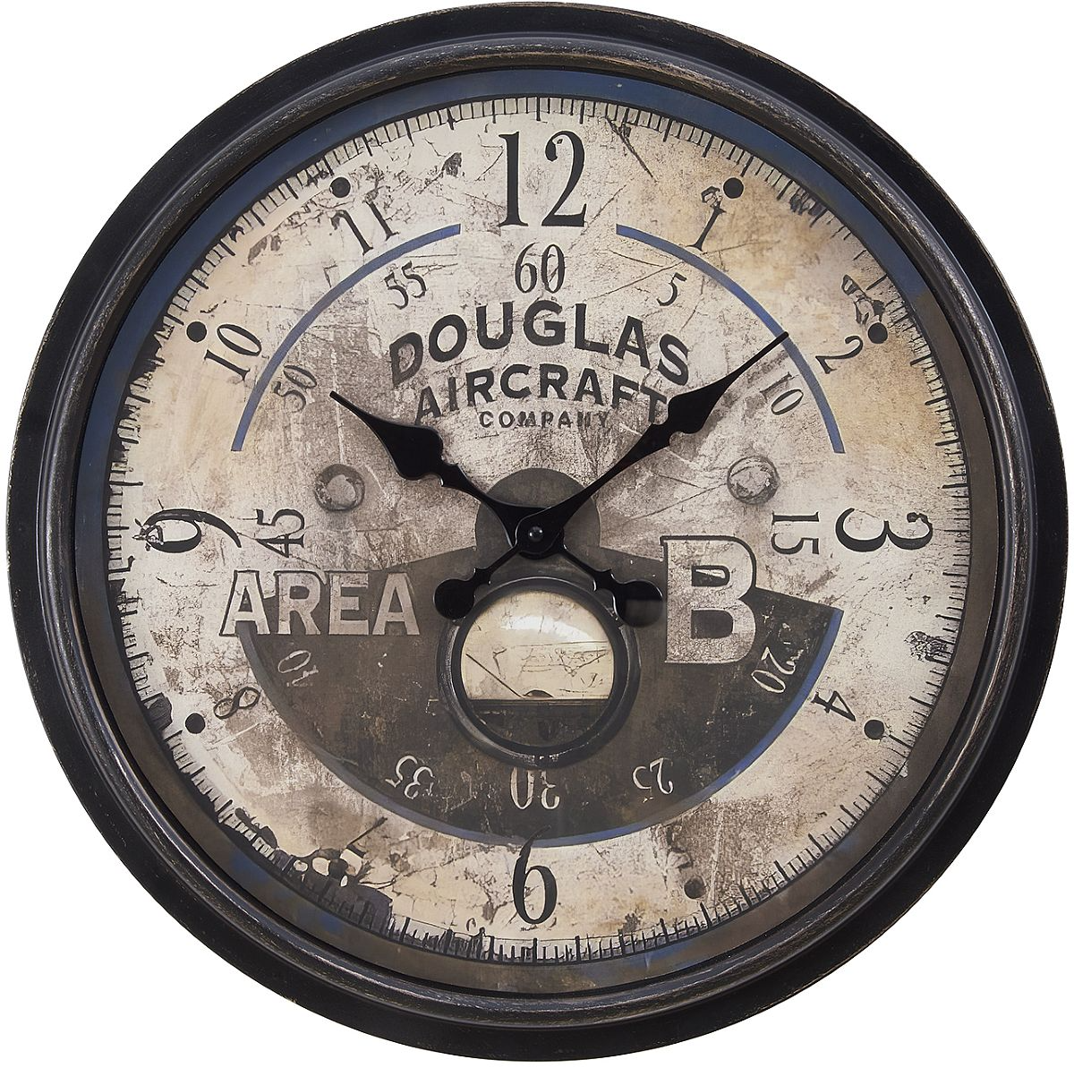 Add a touch of nostalgia to your home with this striking 20" round wall clock in antique brown. This clock is sure to be a focal point for any home decor with its durable plastic frame, easy to read numerical markings against a printed vintage aviator backdrop all encased under a glass surface.Read More
