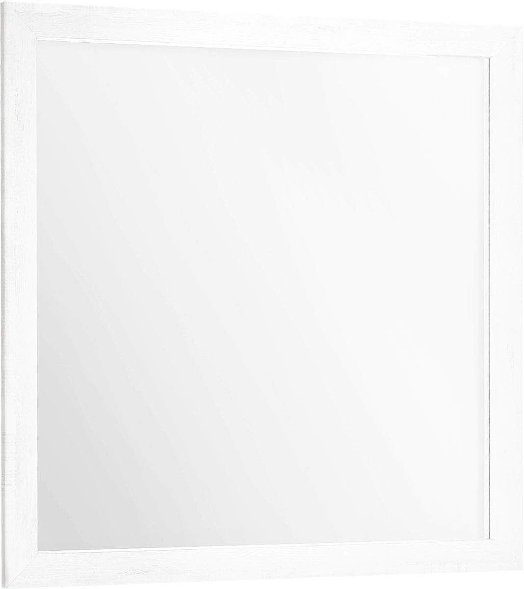An elegant, framed square wall mirror in a contemporary white wood grain finish, expertly designed to complement your chic bedroom décor