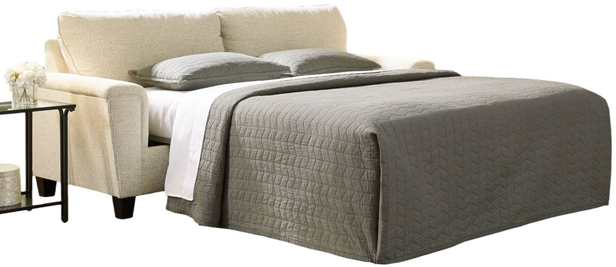 If you’re looking to lighten the mood, you’re sure to find this space-conscious, budget-conscious queen sofa sleeper a breath of fresh air. Covered in a cream-tone chenille upholstery loaded with plush texture, this less-is-more contemporary sofa is dressed to impress with angled side profiling and track armrests wrapped with a layer of pillowy softness for that little something extra.Read More