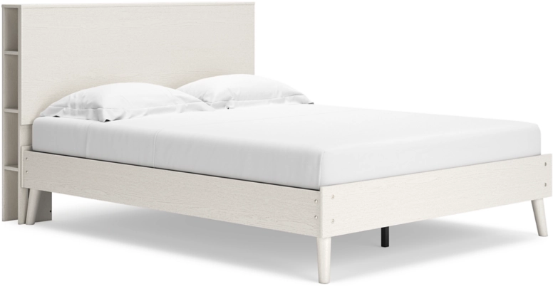 Dare to take minimalism to the max. This full bookcase bed has an air of sleek simplicity thanks to its white painted finish with subtle replicated wood grain. A space-efficient storage option, cubbies along the side of the headboard ensure you can keep your favorite reads within reach. USB charging keeps up with your high-tech lifestyle. There's no doubt about it: This contemporary piece is sure to become a classic.Read More