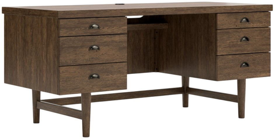This home office desk expertly blends modern form and function. Its warm brown finish brings an inviting feel to studying or working from home. Handy storage drawers and a discreet spot for files ensure your office is always in order.Read More