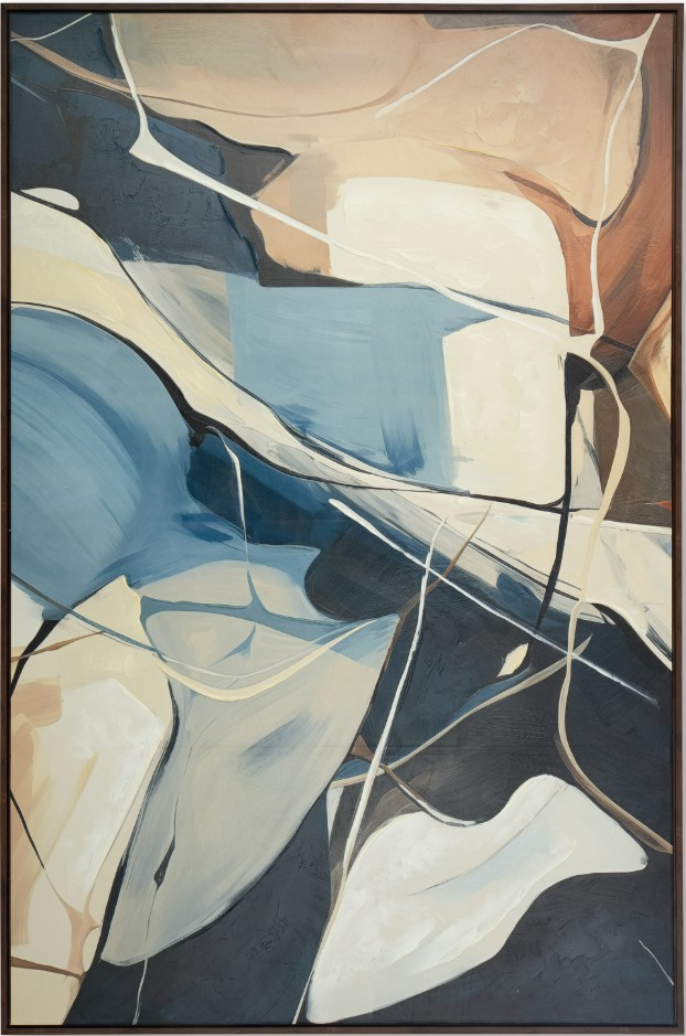 Eye-catching shapes make for an intriguing abstract design in this wall art. Its blue, brown and tan hues add a wonderfully warm and neutral touch to your home. And when it's time to refresh your space, you have the option to hang it one of four ways. Hand-painted embellishments make each piece unique.Read More