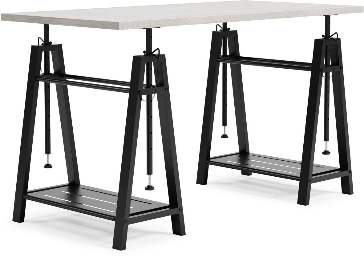 Choice in home office furniture, it has an unmistakable farmhouse feel thanks to design elements including a whitewashed finish and gunmetal accents, this sawhorse adjustable height desk is right on-trend. Whether you're sitting, standing, typing, or crafting, you're sure to love the sawhorse desk's unique 8-level adjustable height feature.Read More