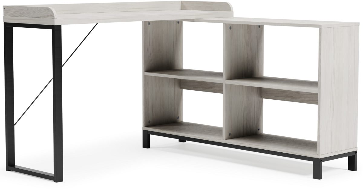 Love an urban farmhouse aesthetic? Make it work to your advantage with this L-desk. A simply striking choice in home office furniture, it has an unmistakably fresh feel thanks to a whitewashed finish and black metal frame. Attached to this casually chic desk is an open bookcase that offers ample storage space for all of your office essentials.Read More