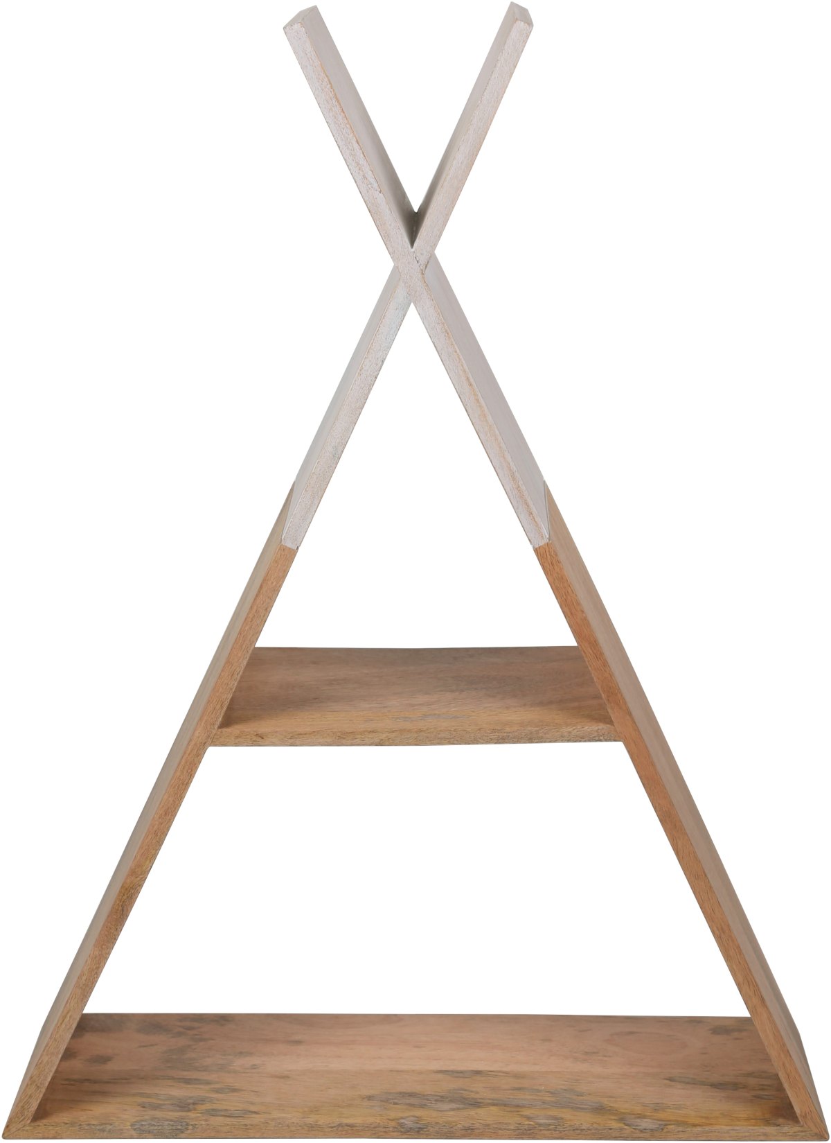 This triangular wall shelf completes any quirky-casual space. Two natural wood shelves in the frame allow for a layered look with endless creative opportunities. White finished wood adds a unique contrast to the top of the piece.Read More