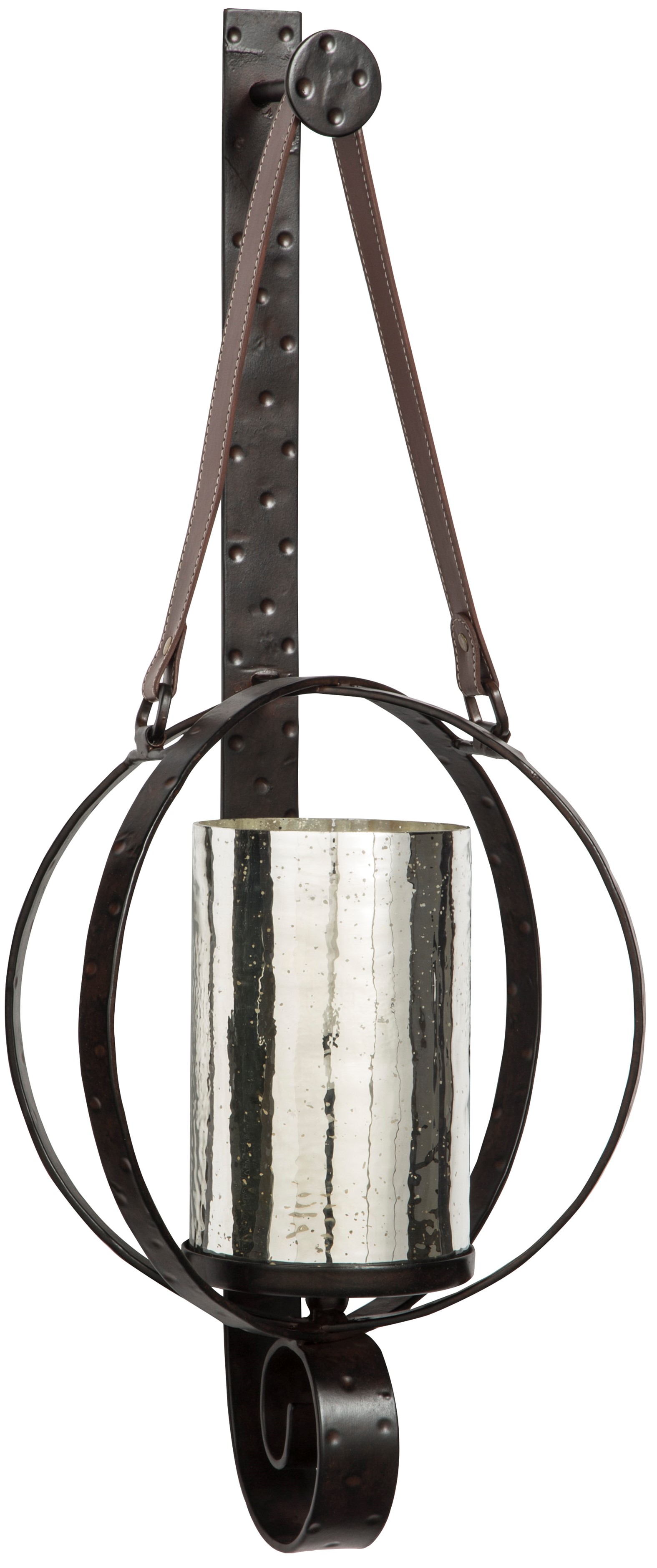 Love a rustically refined sense of style? You’re sure to be hooked on this one-of-a-kind wall sconce. Luminous mercury glass hurricane is encircled by hammered metal rings and secured by a strapping leather strap and metal wall brace.Read More