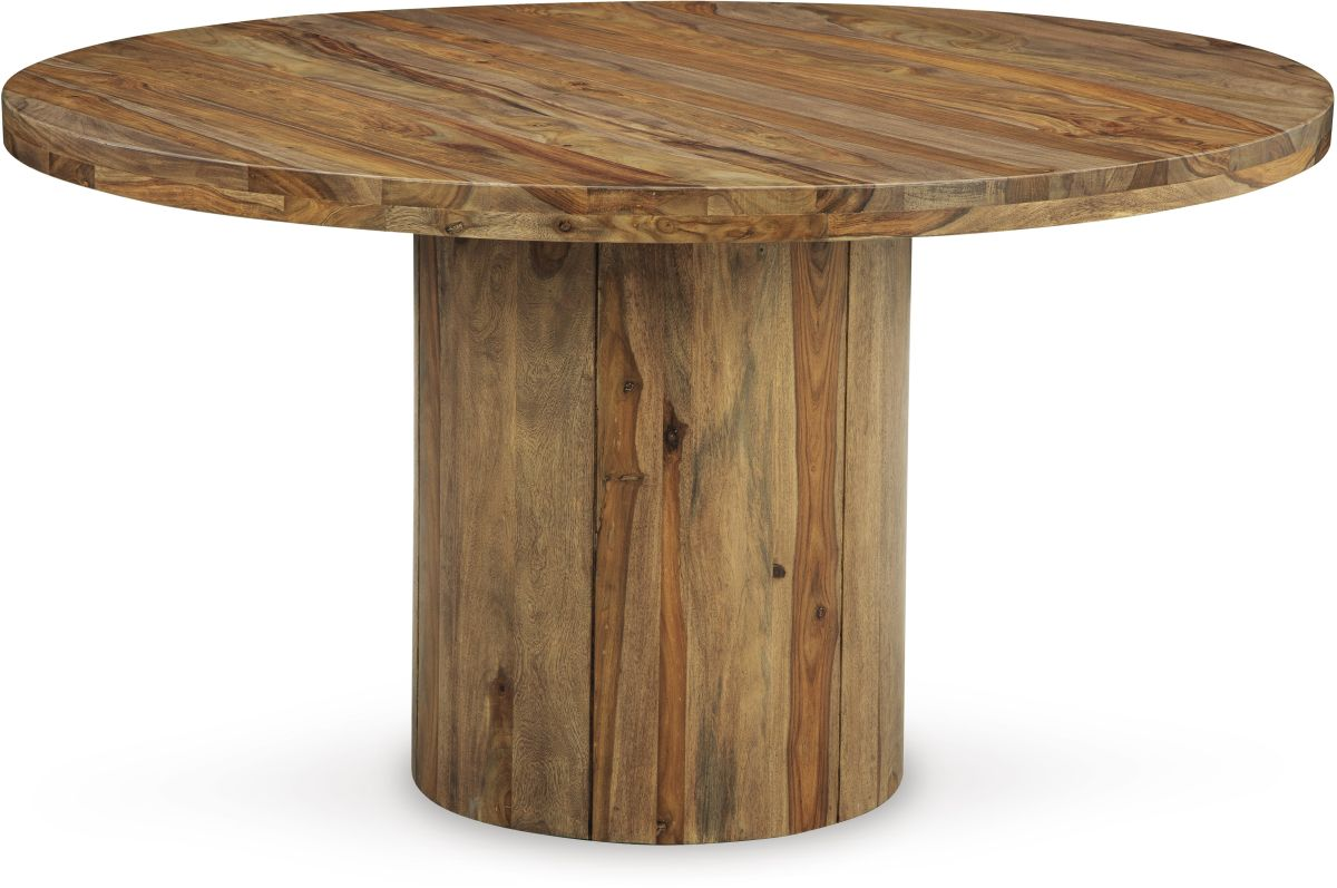 With a beautiful wood finish, this Dressonni Dining Table has classic styling. Featuring a thick solid wood top set on a sturdy round pedestal for a clean-lined contemporary appeal. This piece serves as the focal point in your home.Read More