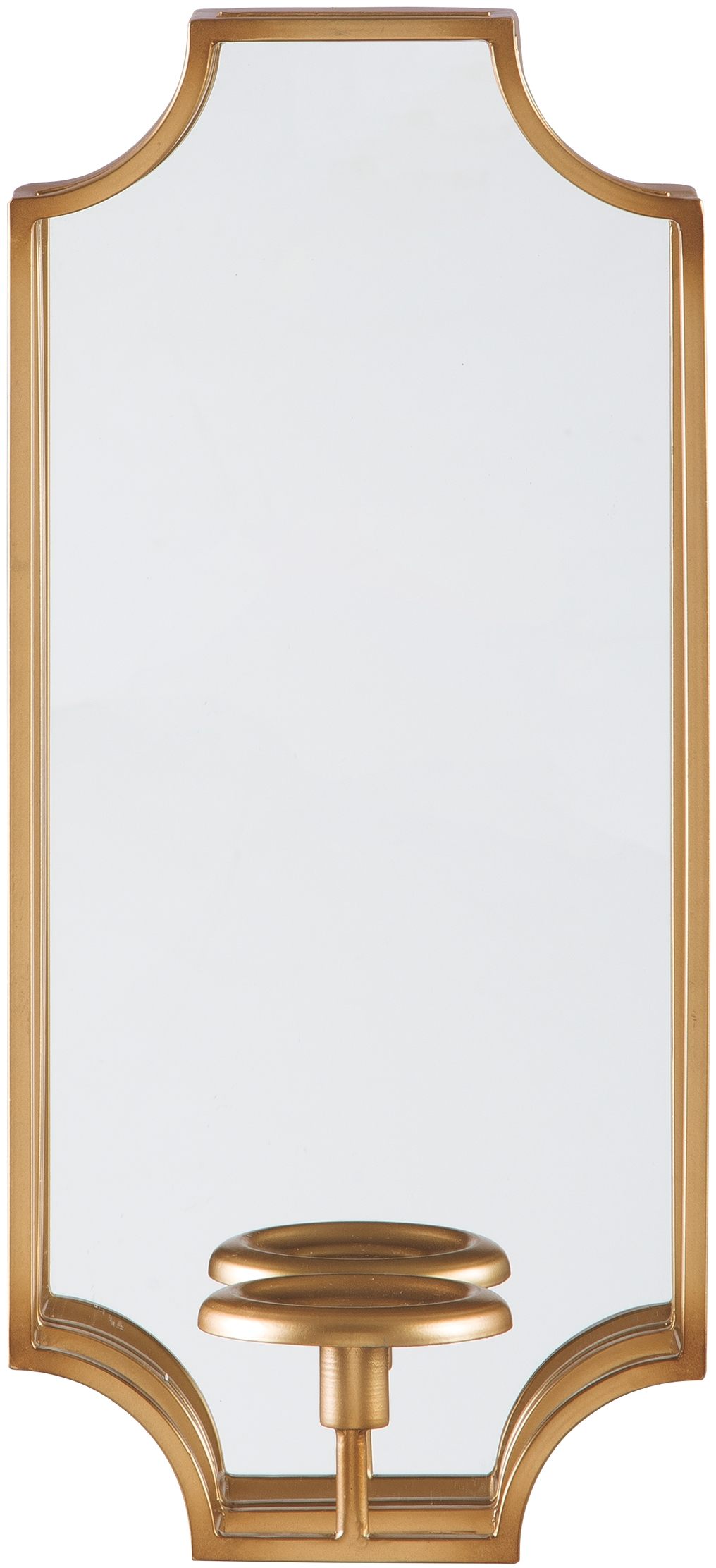 Get glitz and glamor with the mirrored glass and gold-tone frame of the Dumi wall sconce. Set a taper or pillar candle onto the holder to really light up your space.