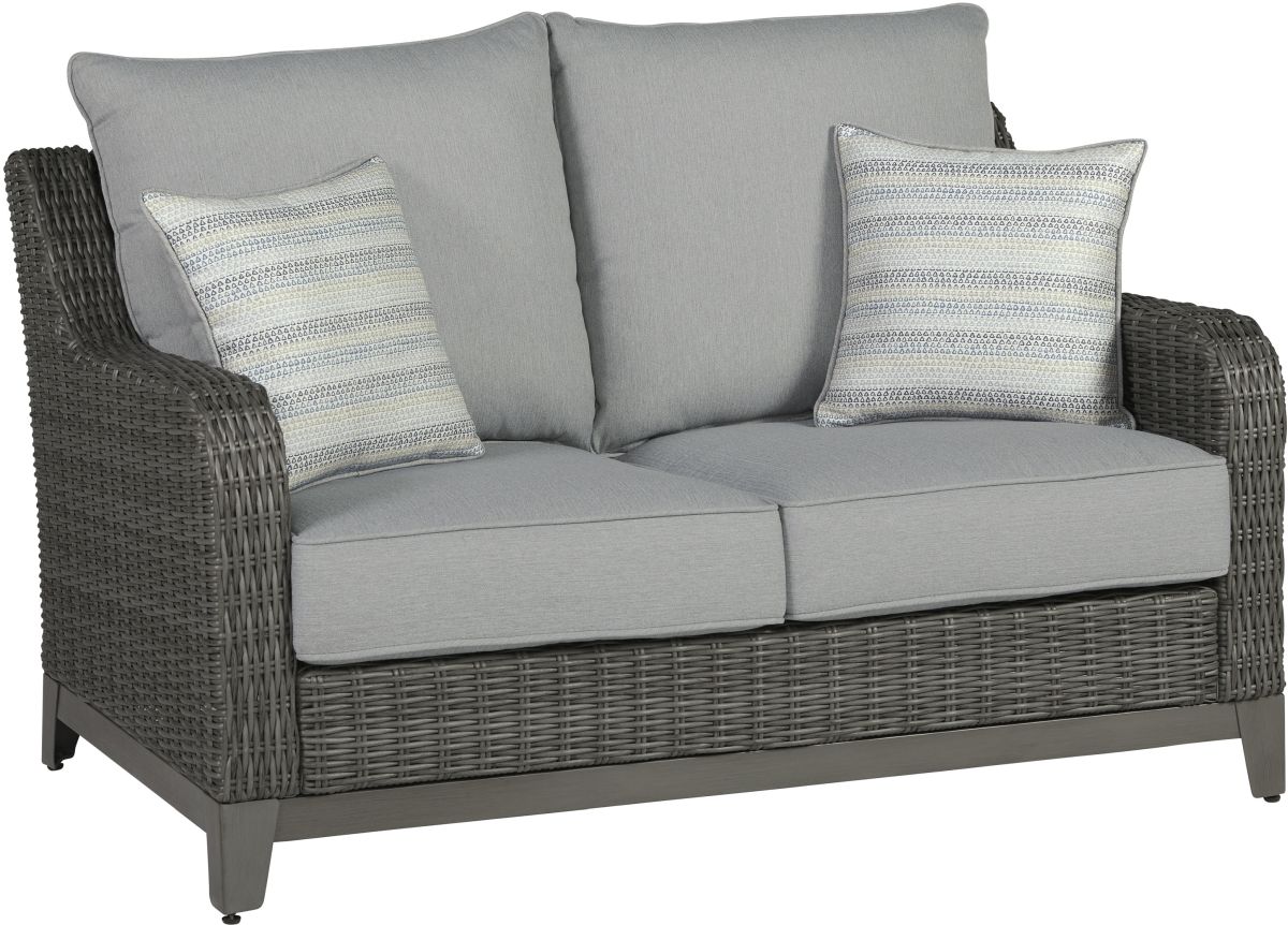 Add a distinguished touch of gray to your outdoor living space with this loveseat. It's made with resin wicker over an aluminum frame for a relaxed look that provides seasons of enjoyment. Rest assured, the thick seat and back cushions are wrapped in Nuvella® high-performance fabric that’s fade-resistant, stain-resistant and a breeze to clean.Read More