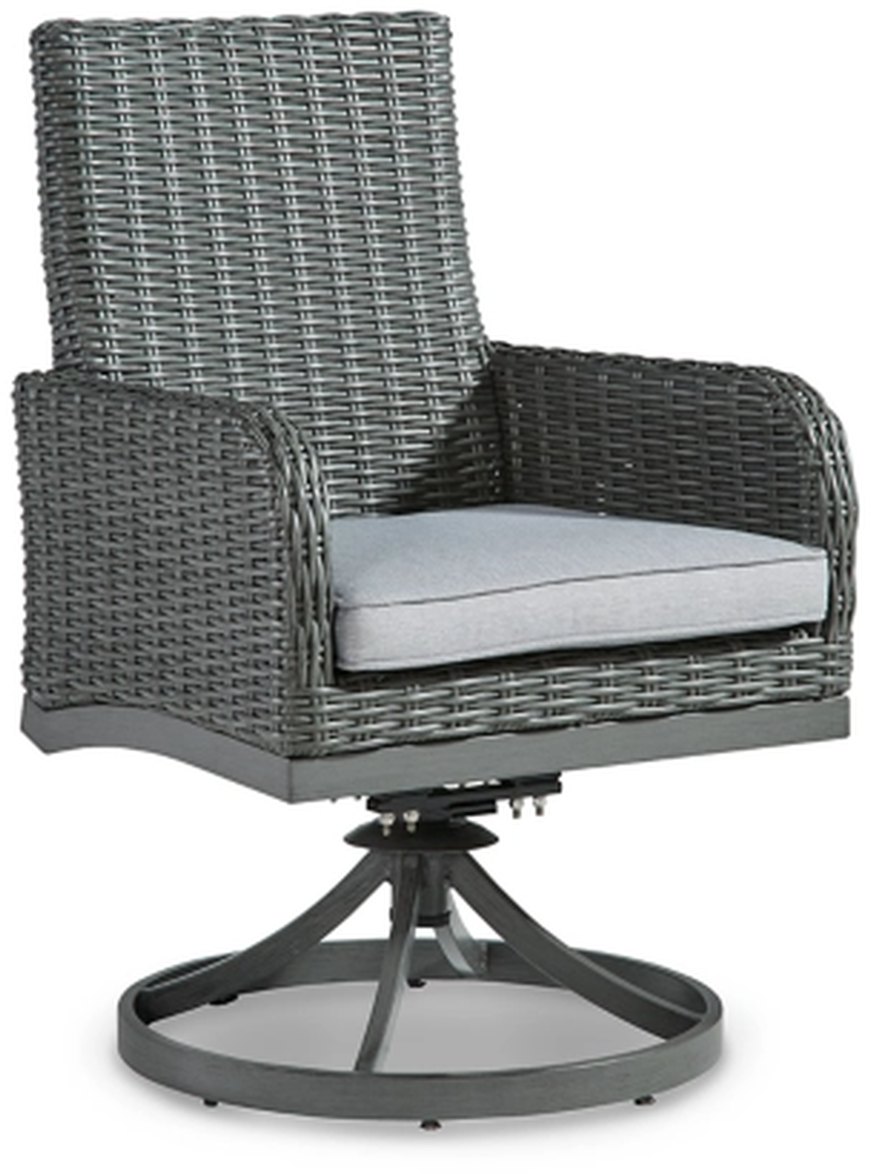 Resin wicker on gray aluminum frames. High performance Nuvella fabric. Assembly required. Cushioned aluminum dining set. Hand woven gray resin on a powder coated aluminum frame with hand applied finish. Gray Nuvella high performance fabric. Stainless steel hardware. Assembly required.Read More