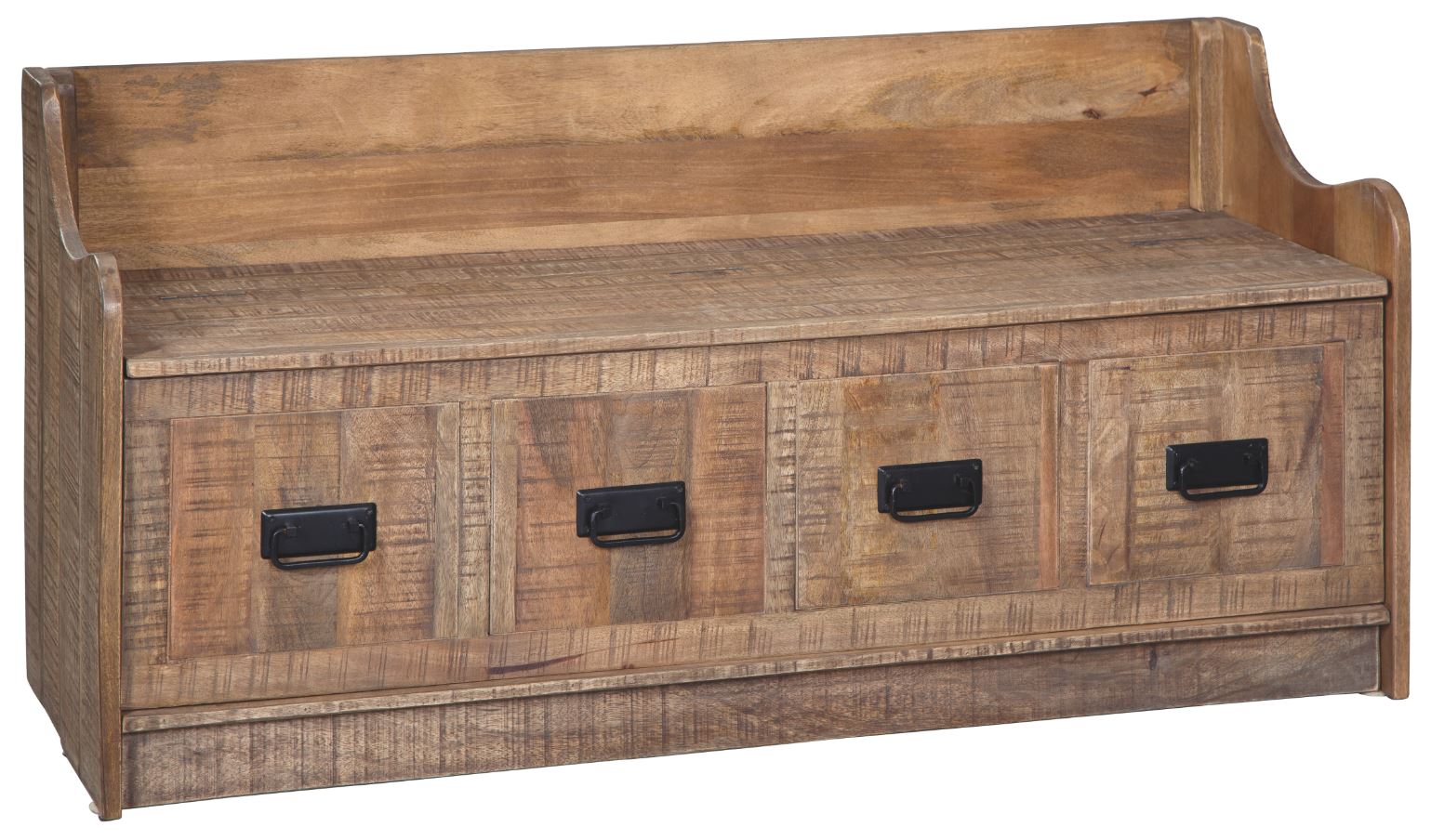 Load up on vintage charm with this solid wood accent bench. Sporting faux drawer fronts adorned with black bail pulls, this handy-dandy bench includes a hinged seat revealing underlying storage. Assembly required for this product.Read More
