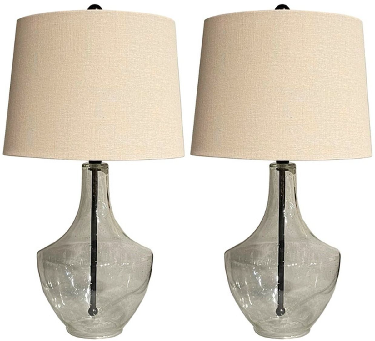 Signature Design by Ashley® Gregsby 2-Piece Table Lamp features clear seeded glass and black finished metal table lamp. Modified drum hardback shade. 3-way switch. (1) E26 socket, type A bulb - 100 watts max or 23 watts max CLF.Read More