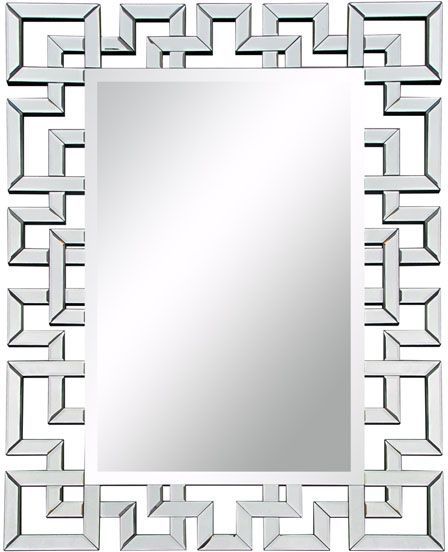 The Jasna accent mirror features a Greek key design, cut glass, a ¾” bevel, and a D-ring bracket hanger. This mirror can be hung horizontal or vertical.