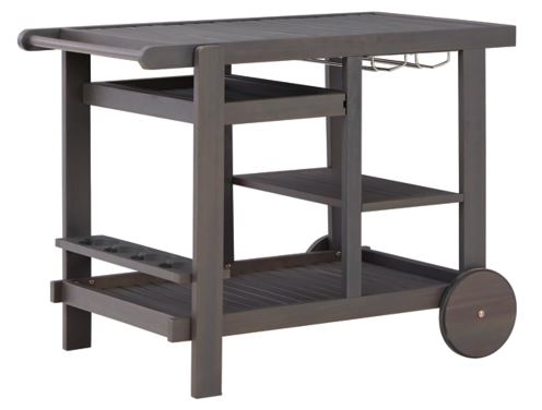 Whether decking out your deck or patio or making a splash by the pool, the Kailani bar cart serves it up right. Its trendy design is decidedly modern, with slat-style trays that are as pretty as they are practical. One tray even slides out to help serve your guests. Smooth-gliding wheels and a "party foul" protective bottle holder keep you on a roll.Read More