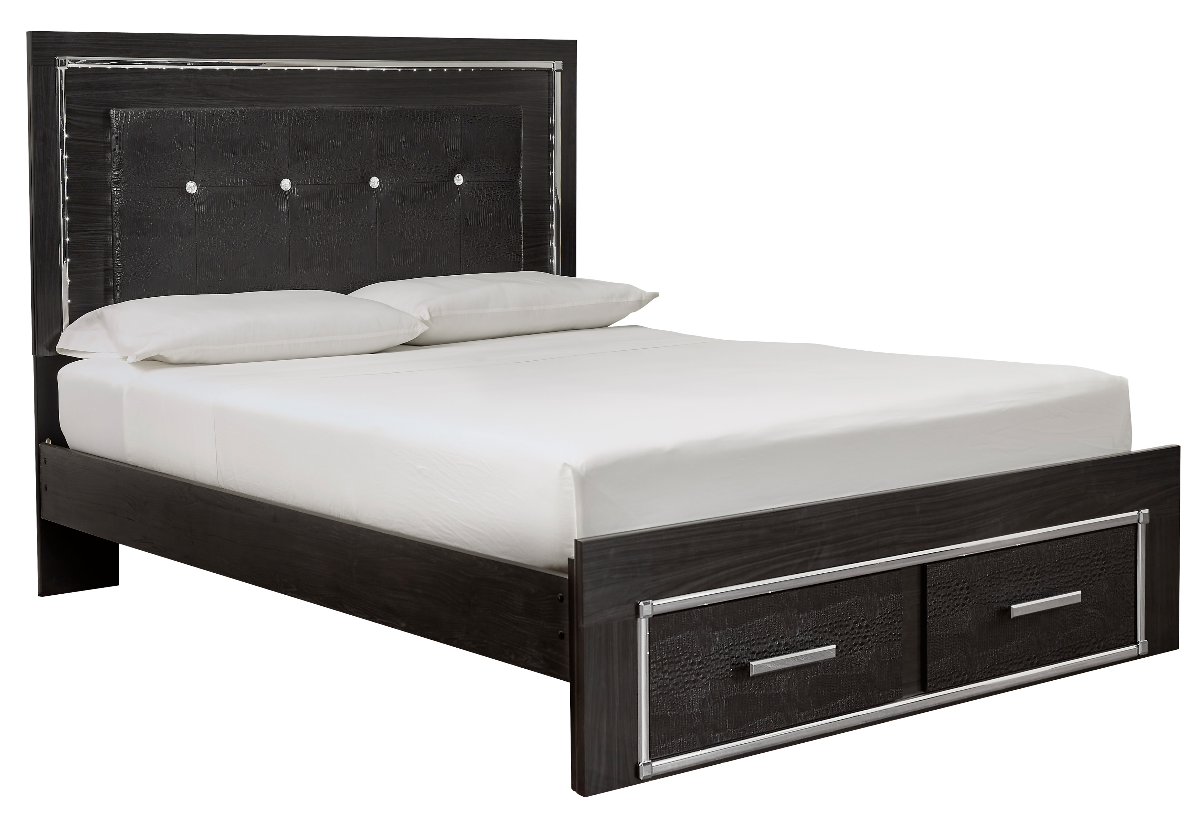 Rest easy. The luxurious look you’ve been dreaming of is yours for the taking, at a price sure to put you at ease. This queen upholstered panel bed brings a sense of old Hollywood with a contemporary flair. A deep, dark finish, faceted chrome-tone accents and LED lighting exude Hollywood-chic style to the max.Read More