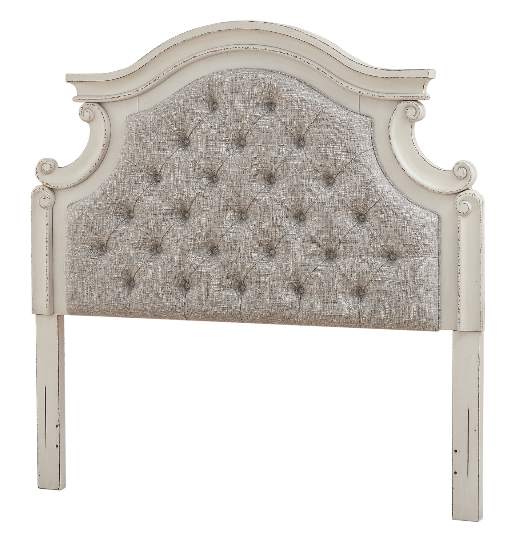 Elevating the art of traditional cottage styling, the Realyn King/California King Headboard is your dream bedroom retreat realized. A curvaceous beauty, this brilliant bed wows with dramatic scalloped details. Assembly required for this product.Read More