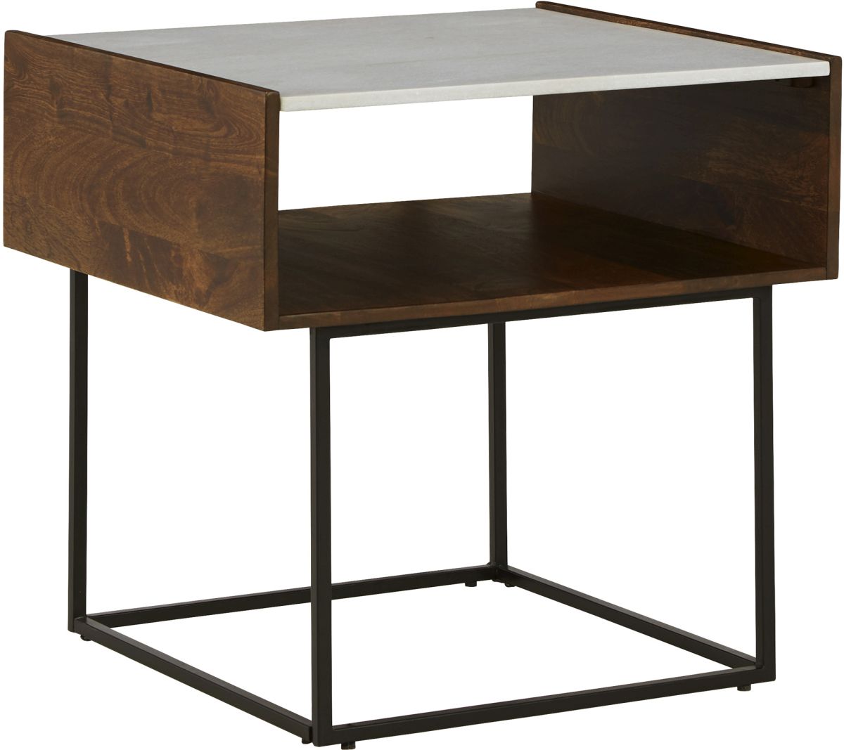 A posh and polished look for a contemporary aesthetic, this striking end table features solid mango wood, a natural marble tabletop and a slim metal base. Designed with an open cubby shelf for extra storage, this beautiful table easily complements modern seating arrangements.Read More
