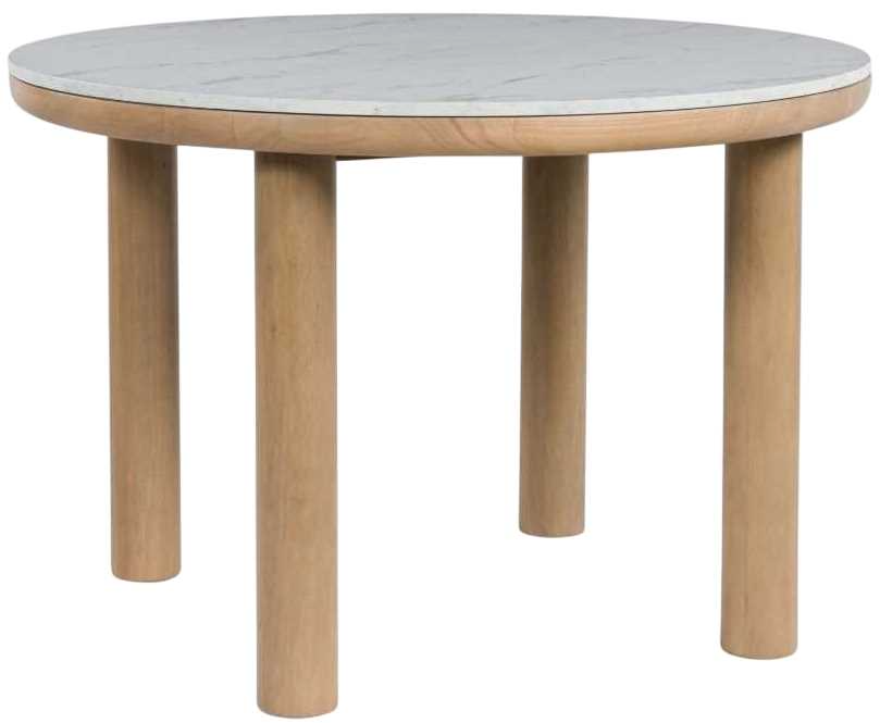 Clean lines meet cool curves with this dining table. Chunky round post legs and a natural finish lend a modern vibe, while a replicated white marble top completes the casual lifestyle design. What a delicious choice for a dining room update.Read More