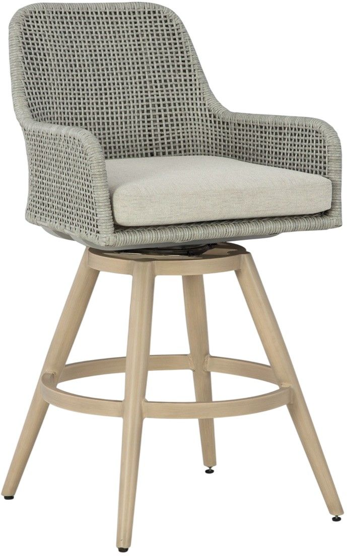 This swivel bar stool invites your casual contemporary style outdoors. With its resin wicker in a chic neutral hue, it expertly marries refined design with durability. The 360-degree swivel makes it easy to switch from watching the kids at the pool to grabbing a drink from the table.Read More
