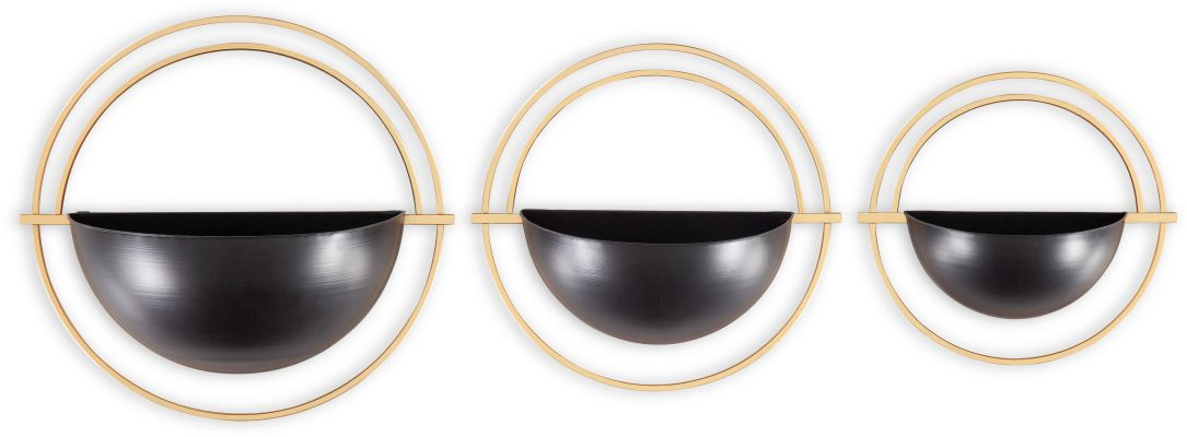 Signature Design by Ashley® Tobins Wall Planter features set of three, black and gold finished metal wall planter, indoor/outdoor safe and Keyhole bracket for hanging.Read More